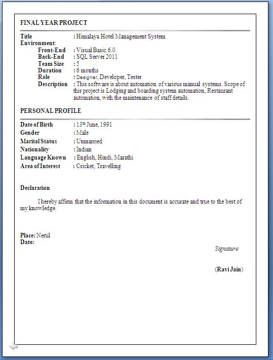 Fresher Resume Best Format Download In Ms Word Cv Sample Doc File