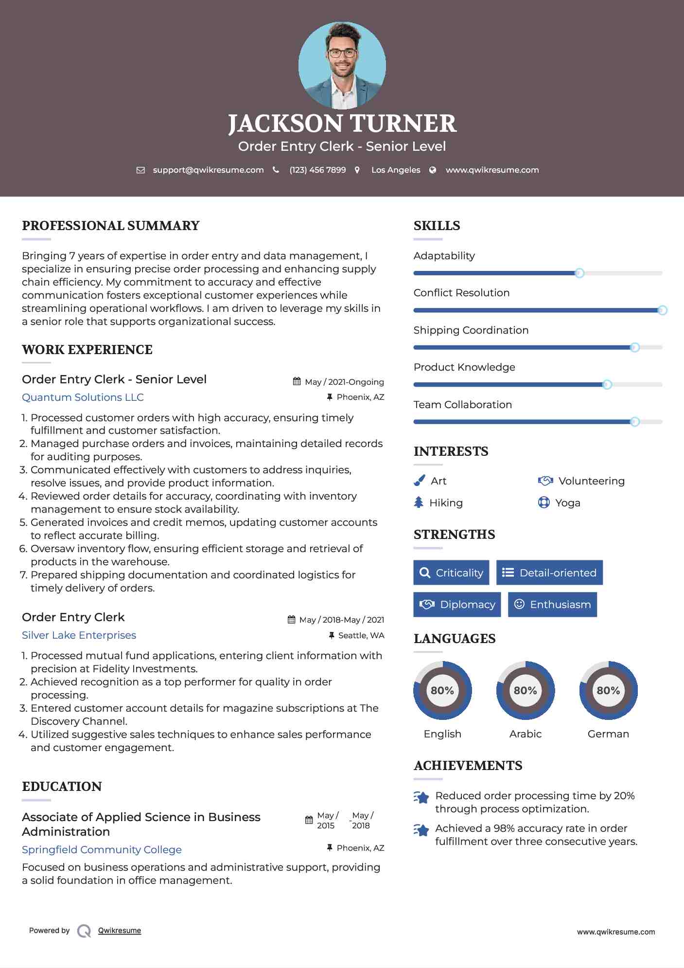 Order Entry Clerk Resume Template For Word Word Excel Templates