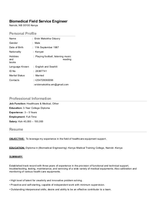 Biomedical Service Engineer Resume Www Orgbinder Com