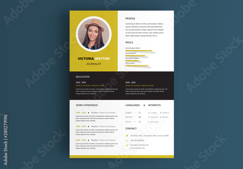 Resume Layout With Yellow And Black Accents Buy This Stock