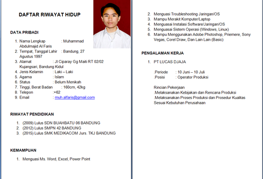 Contoh Cv Daftar Riwayat Hidup Yang Baik Dan Benar Contohpedi