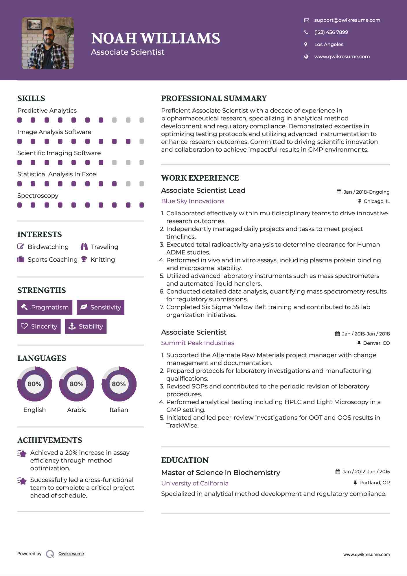 Associate Scientist Resume Samples Qwikresume