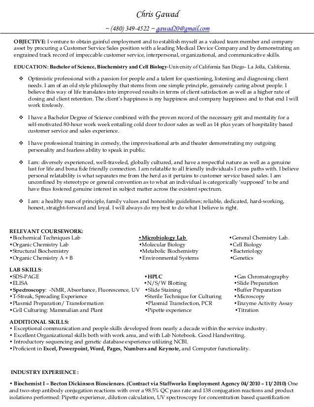 Resume Sample For A Sales Manager With A Degree In Biology
