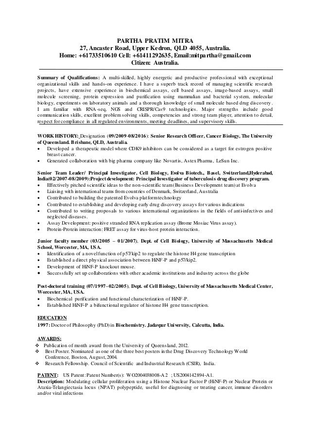 Sample Resume Molecular Biology
