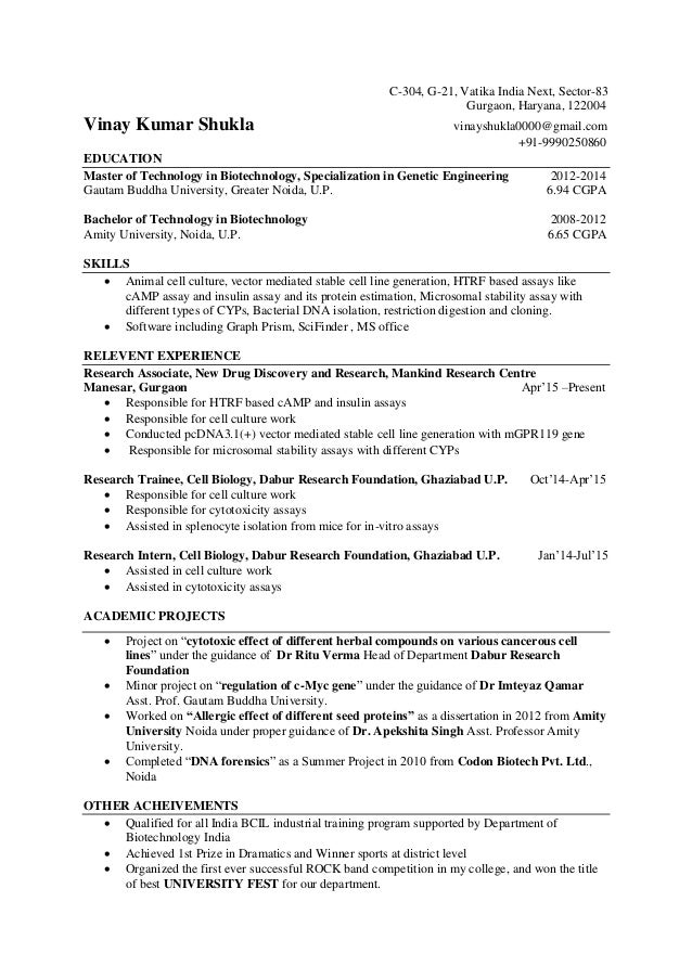 Biotechnology Resume Sample Best Resume Examples