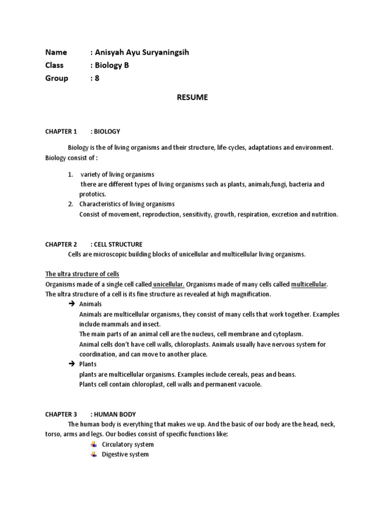 Name Anisyah Ayu Suryaningsih Class Biology B Group 8 Resume