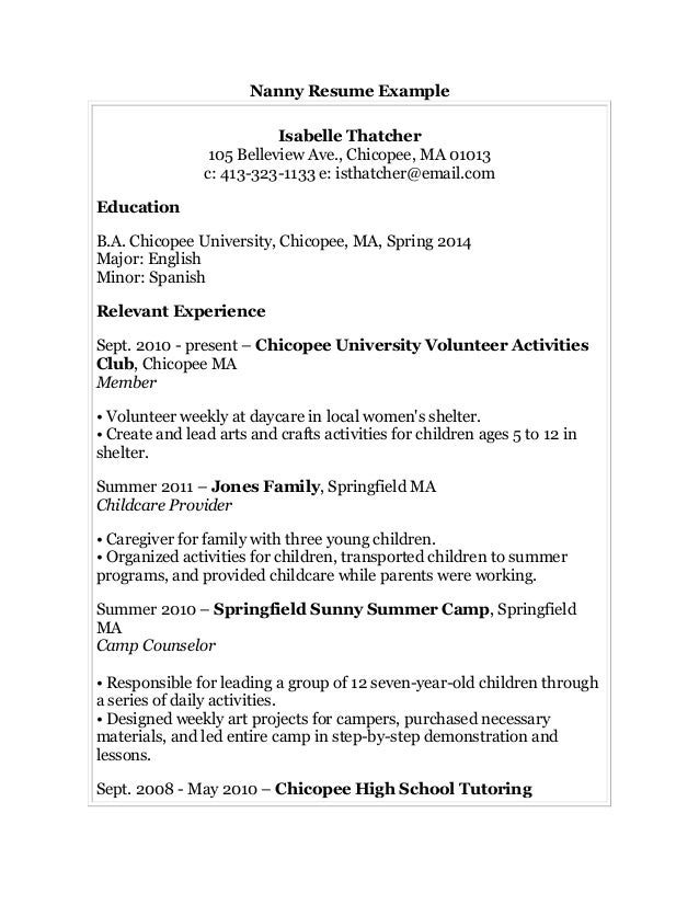 Resume Cv How To Have Nanny Resume