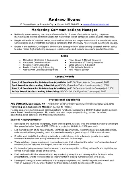 Marketing Manager Resume Writing Guide 12 Templates 2020