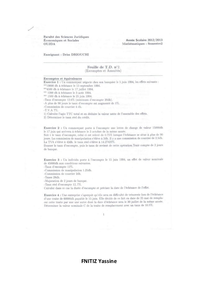 Resume Du Cours Des Mathematiques Financiere T Ds S2
