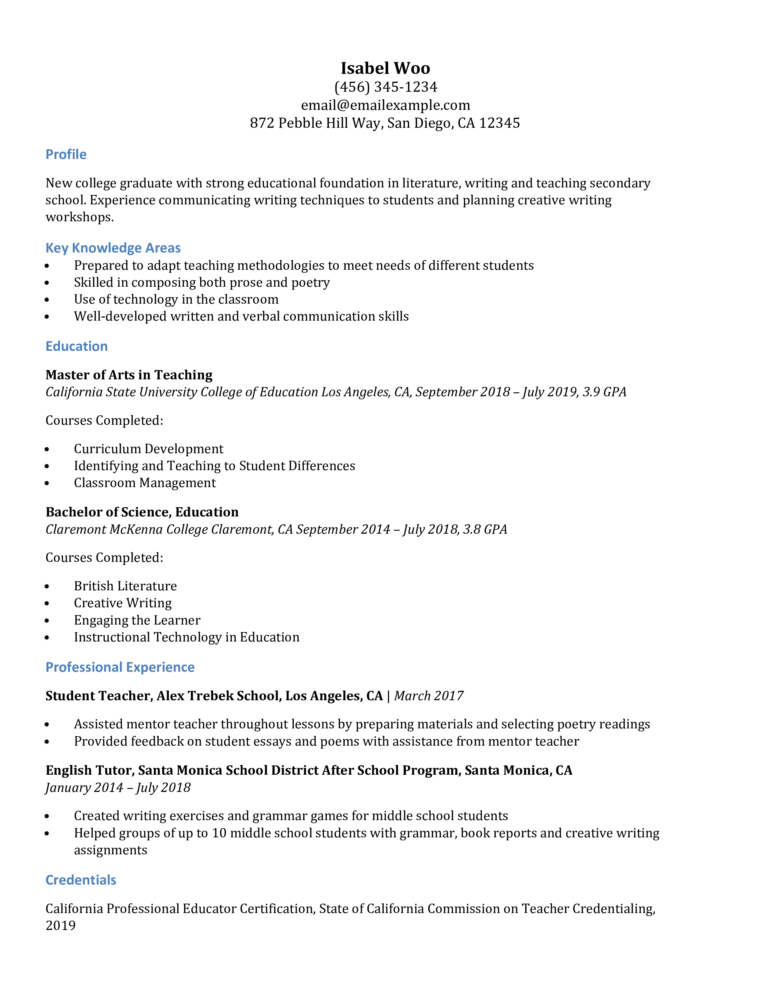Teacher Resume Writing Tips Resume Templates Free In 2020