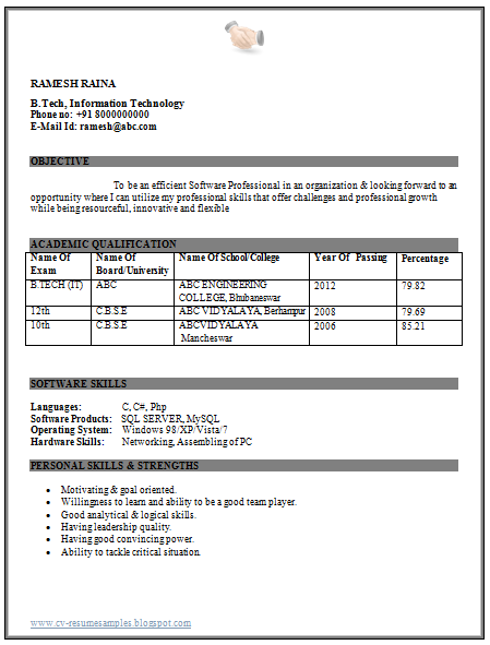 Resume Format For Freshers Engineers Cse Resume Resume Sample 13339