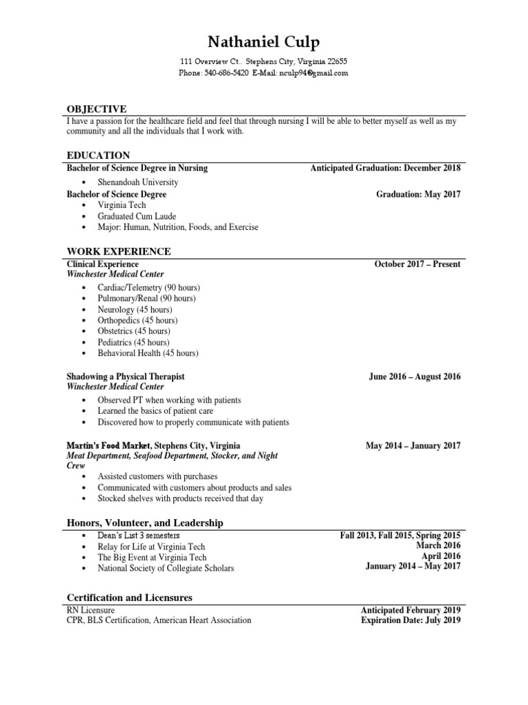 Nathaniel Culp Objective Nursing Health Sciences