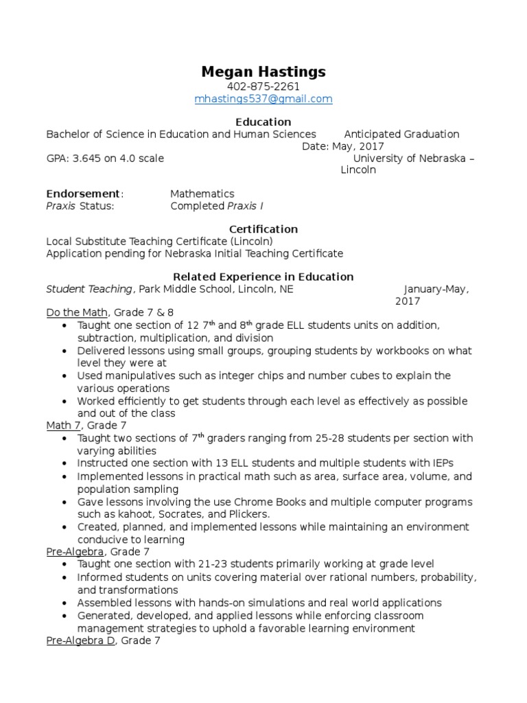 Hastings Resume Grading Education Physics Mathematics