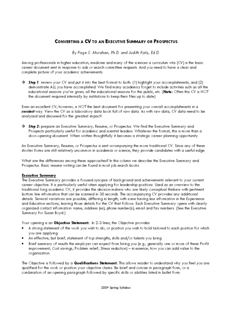 Converting A Cv To An Executive Summary Pdf Resume Doctor Of