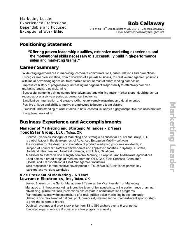 Marketing Executive Resume Example Executive Resumes Livecareer