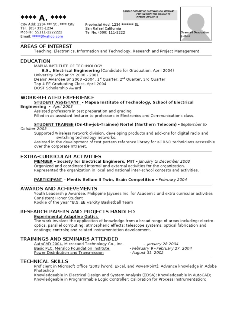 Resume Sample For Fresh Graduate Philippines