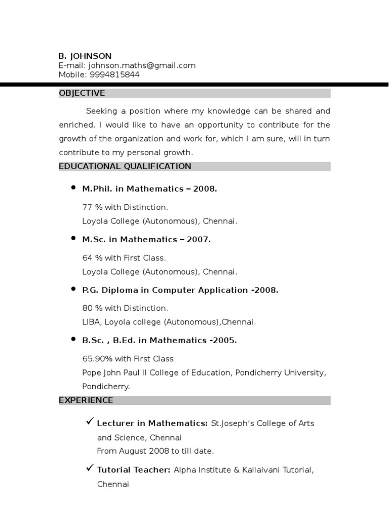 Maths Teacher Resume Word Format Free Download Resume
