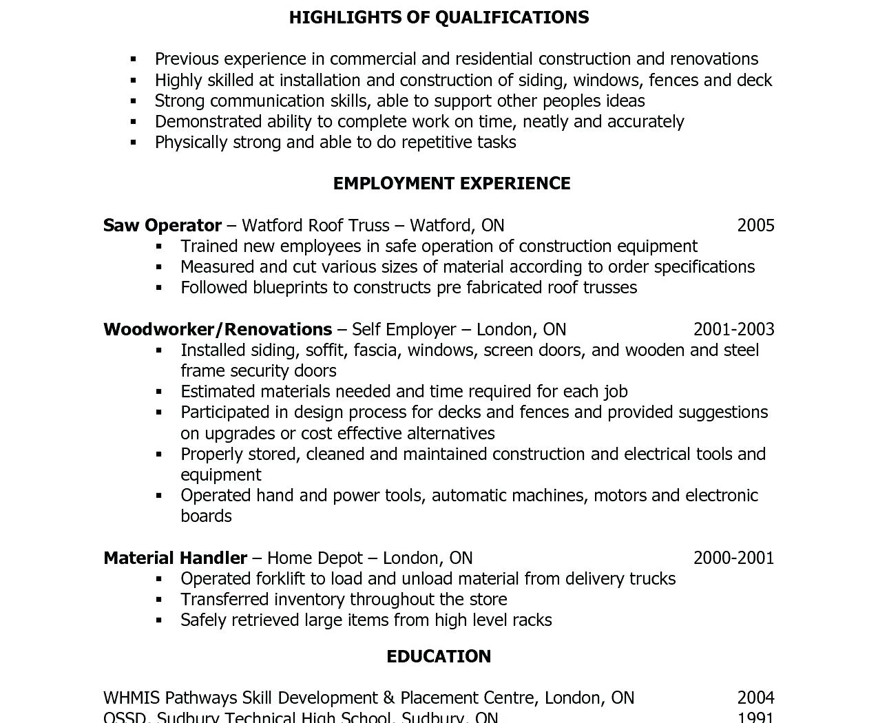 Experienced Carpenter Resume Sample Eezeecommerce Com