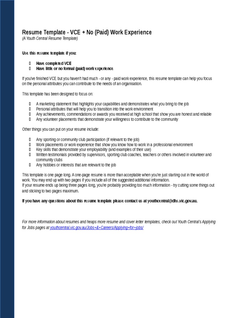 Youthcentral Resume Vce No Work Exp Resume Portable Document