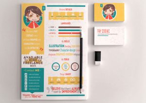 Resume Template Colorful Cute Decor Girl Icon Free Vector In Adobe