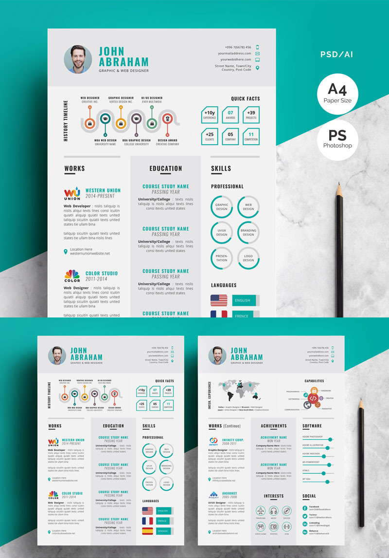 Creative Resume Template A4 Size 2 Pages Infographic Cv For