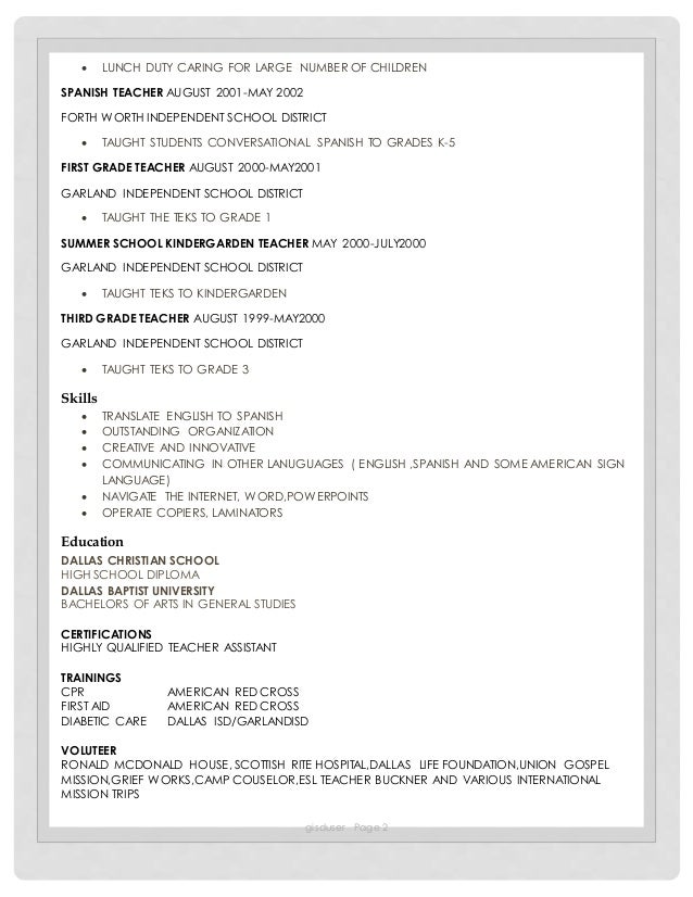 Spanish Teacher Resume Examples And Tips Zippia