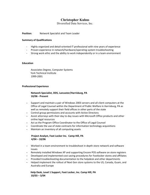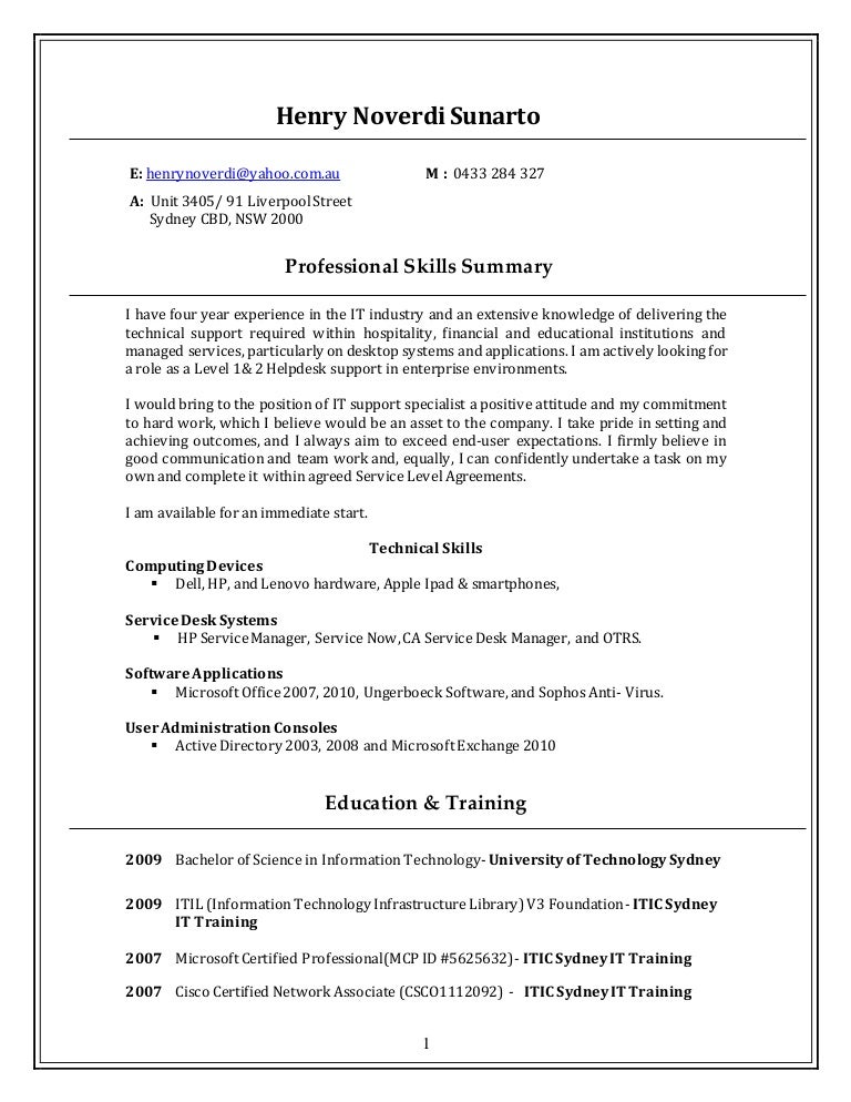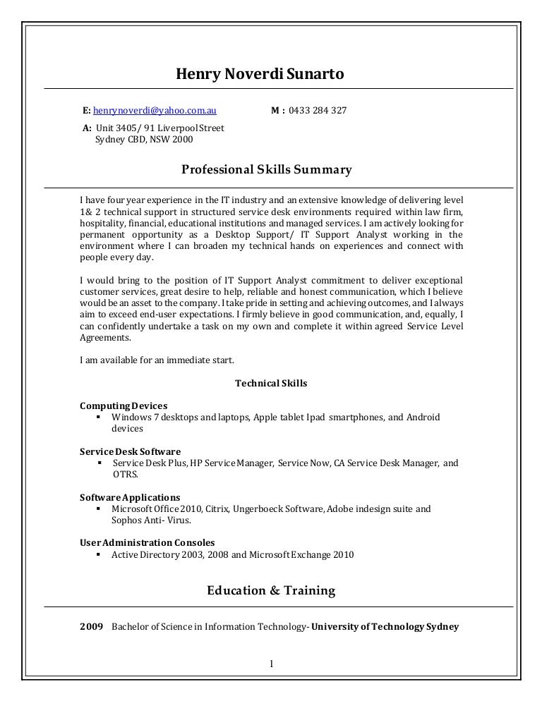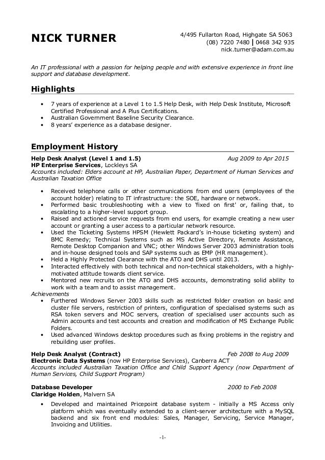 Help Desk Technical Support Resume Resume Writing Pages 1