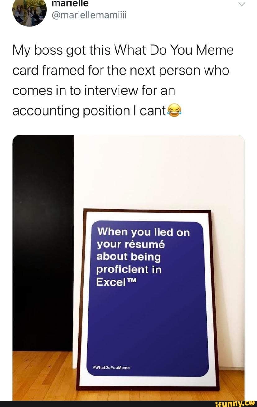 When Someone Asks For My Resume Proficient In Excel And Memes