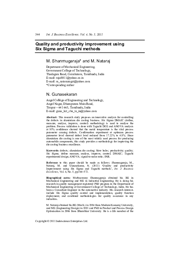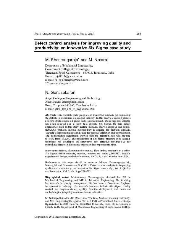 Pdf Defect Control Analysis For Improving Quality And Productivity An Innovative Six Sigma Case Study Nataraj M Academia Edu