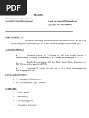 Pdf File Resume Format Pdf For Freshers