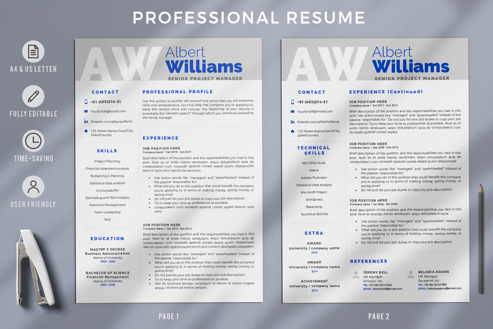 Project Manager Professional Resume Template With Cover Letter Format Resume With Initials For Word In Resume Templates On Yellow Images Creative Store