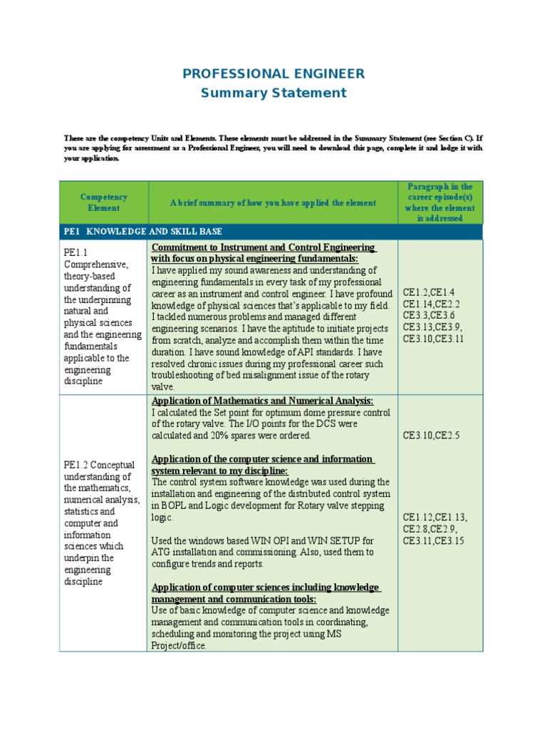 344513758 Sample Professional Engineer Summary Statement Mi Doc