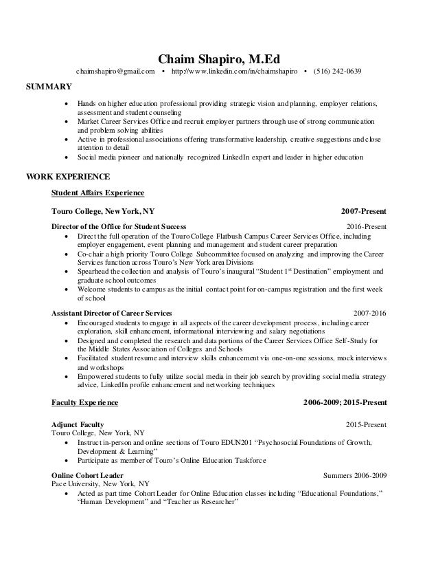 Chaim Shapiro Resume 2018