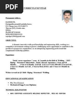 Rajesh Resume For Qa Qc Piping And Welding Inspector Welding