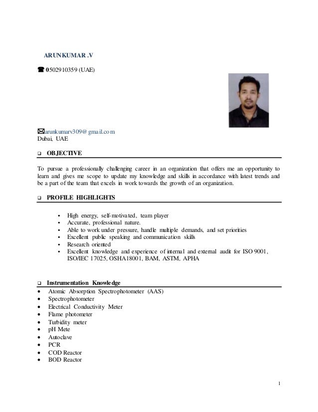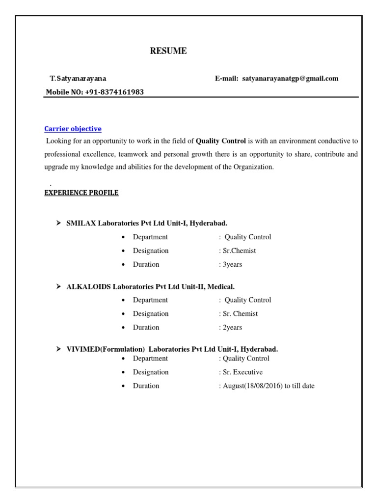 Resume Blog Co Resume Sample Of M Sc Working As Qc Having 4 Years Of Experience