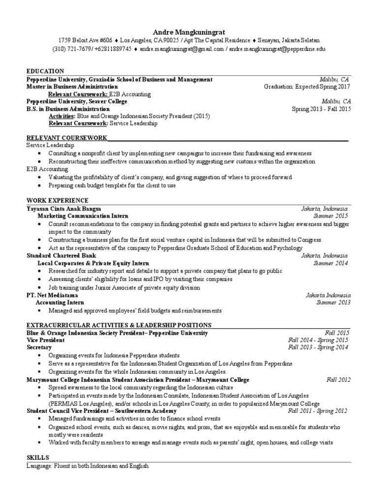 Relevant Coursework Resume Bullet Wall Street Oasis