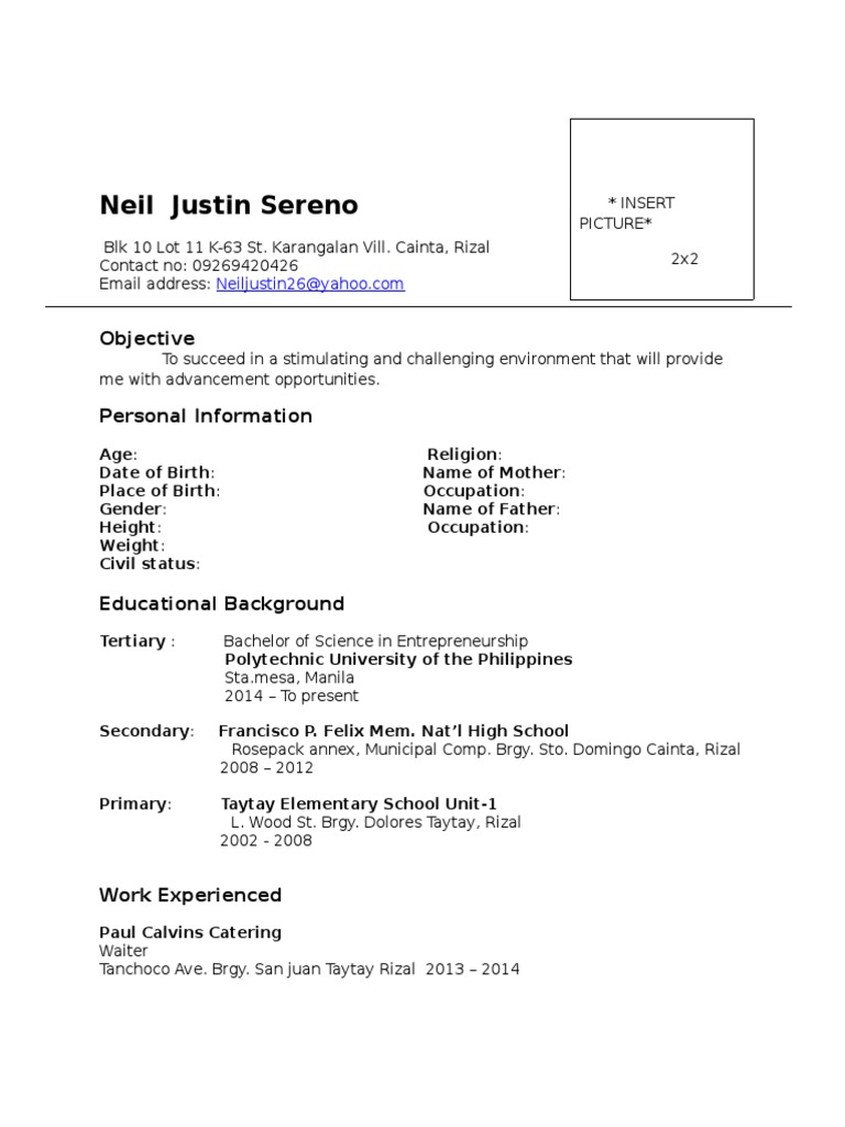 Resume Format In Philippines 514398zxdg4j