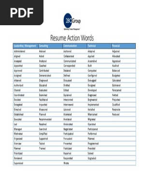 Resume Verbs Pdf Action Verbs For Resumes And Professional