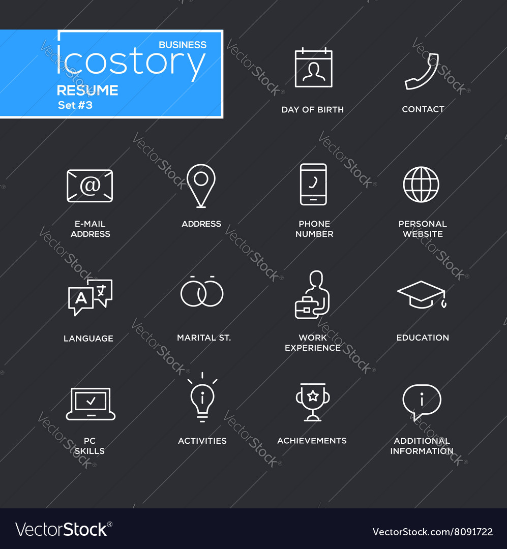 Modern Resume Simple Thin Line Design Icons Vector Image