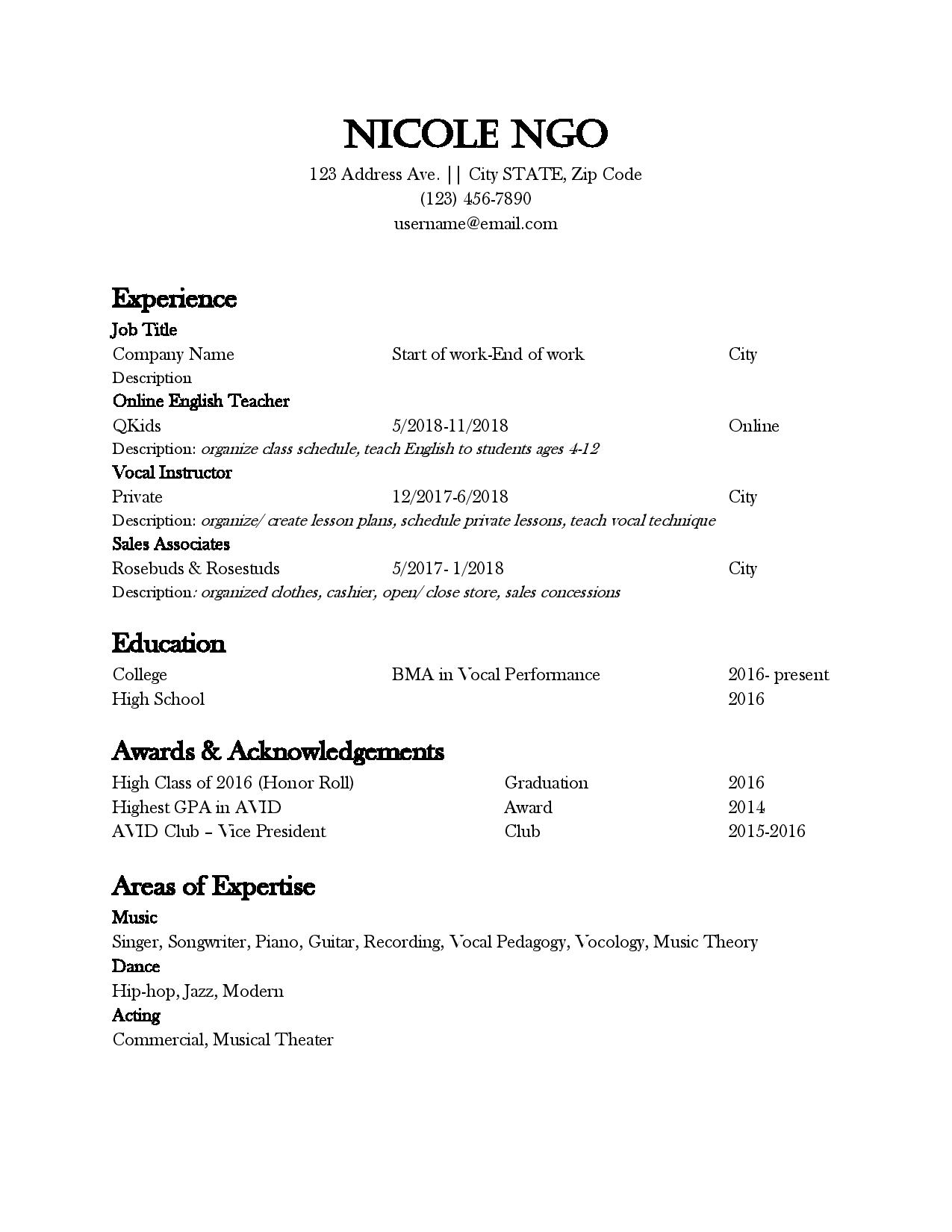 20 Awards And Acknowledgements Resume In 2020 Babysitter Resume Resume Examples Resume Template Word
