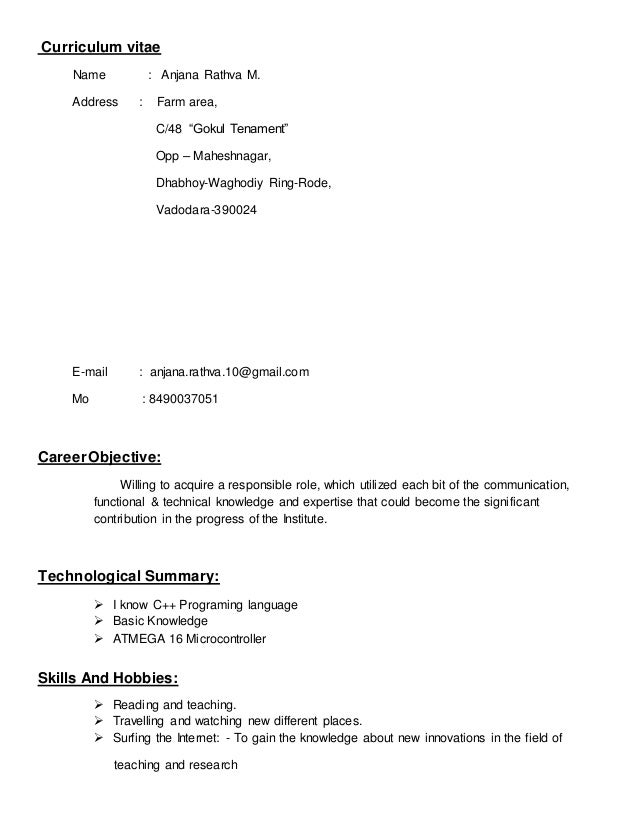 Curriculum Vitae Download Sample Template Example Of Excellent