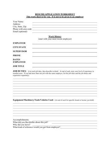 Printable Resume Worksheet Free Http Jobresumesample Com 1992