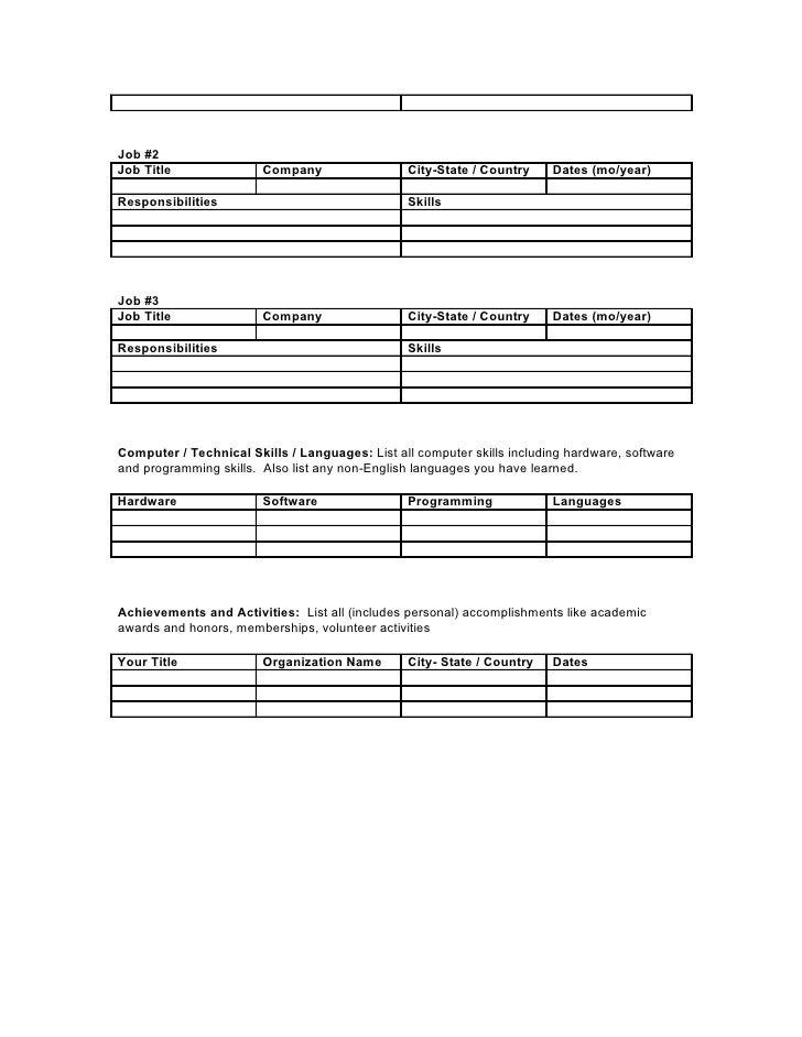 Printable Resume Worksheet Free Http Jobresumesample Com 1992