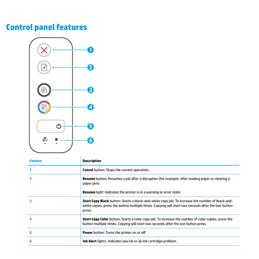 Control Panel Features Hp Deskjet 2540 All In One Printer User