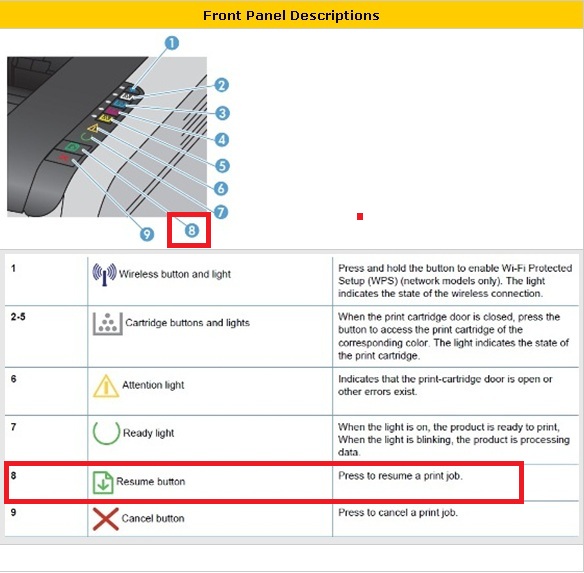 Overview Of Buttons And Lights Hp Officejet Pro 8100