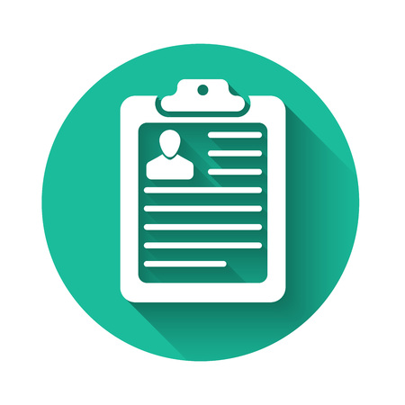 White Clipboard With Resume Icon Isolated With Long Shadow Cv
