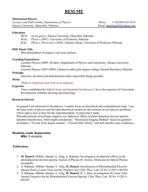 Resume Hazara University