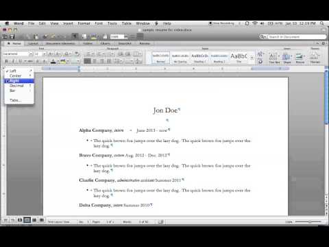 Right Justify Dates In A Resume Using Word For Mac 2011 Youtube