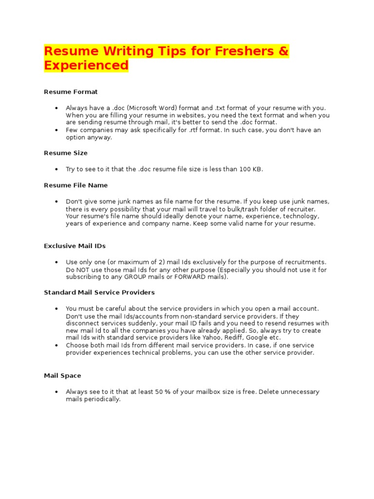17312664 Resume Writing Tips For Freshers Resume Mail