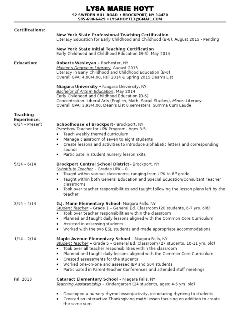 Lysa Hoyts Resume Teaching Application Preschool Teachers